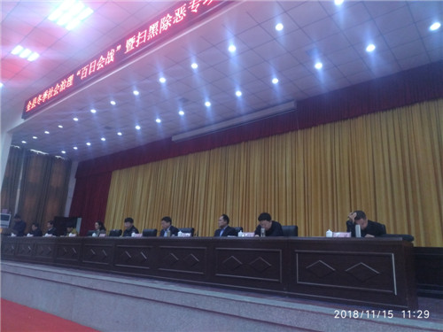 11月15日上午,鹿邑縣在縣委黨校一樓報(bào)告廳召開(kāi)全縣冬季社會(huì)治安“百日會(huì)戰(zhàn)”暨掃黑除惡專項(xiàng)斗爭(zhēng)推進(jìn)會(huì)。會(huì)議對(duì)全縣冬委社會(huì)治理“百日會(huì)戰(zhàn)”第一次工作以及全縣掃黑除惡專項(xiàng)斗爭(zhēng)第五次工作進(jìn)行通報(bào);縣領(lǐng)導(dǎo)梁建松、侯自峰、王曉征、何新敏、齊梅英、魯建軍等出席會(huì)議??h直各局委、各鄉(xiāng)鎮(zhèn)辦事處主要負(fù)責(zé)人、綜治辦主任和各基層派出所長(zhǎng)、司法所長(zhǎng)以及來(lái)自公安、檢察、法院、司法戰(zhàn)線的干警近千人參加會(huì)議。