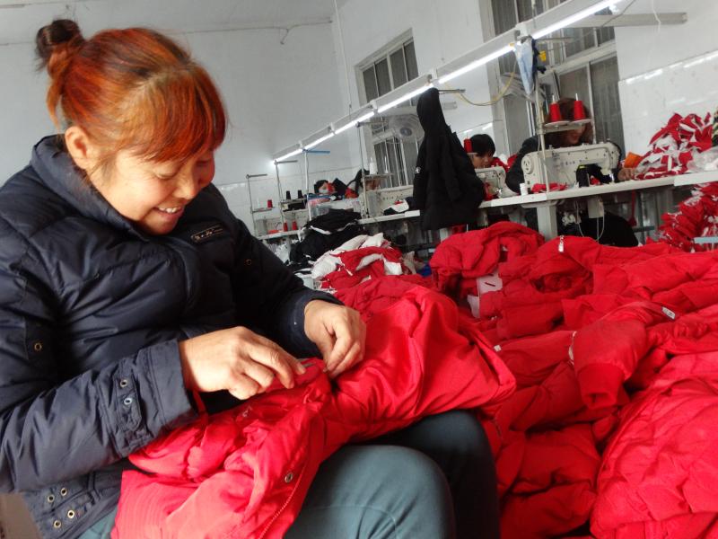近年來,沈丘縣在打響脫貧攻堅戰(zhàn)和鞏固提升脫貧攻堅成果工作中,大力發(fā)展家庭手工業(yè),帶動全縣5000余名留守婦女家門口就業(yè),年人均增收2萬元。左圖為11月19日,周營鎮(zhèn)馬營村留守婦女高英在一個兒童服裝加工點忙著剪線頭。②5 謝辛凌 攝