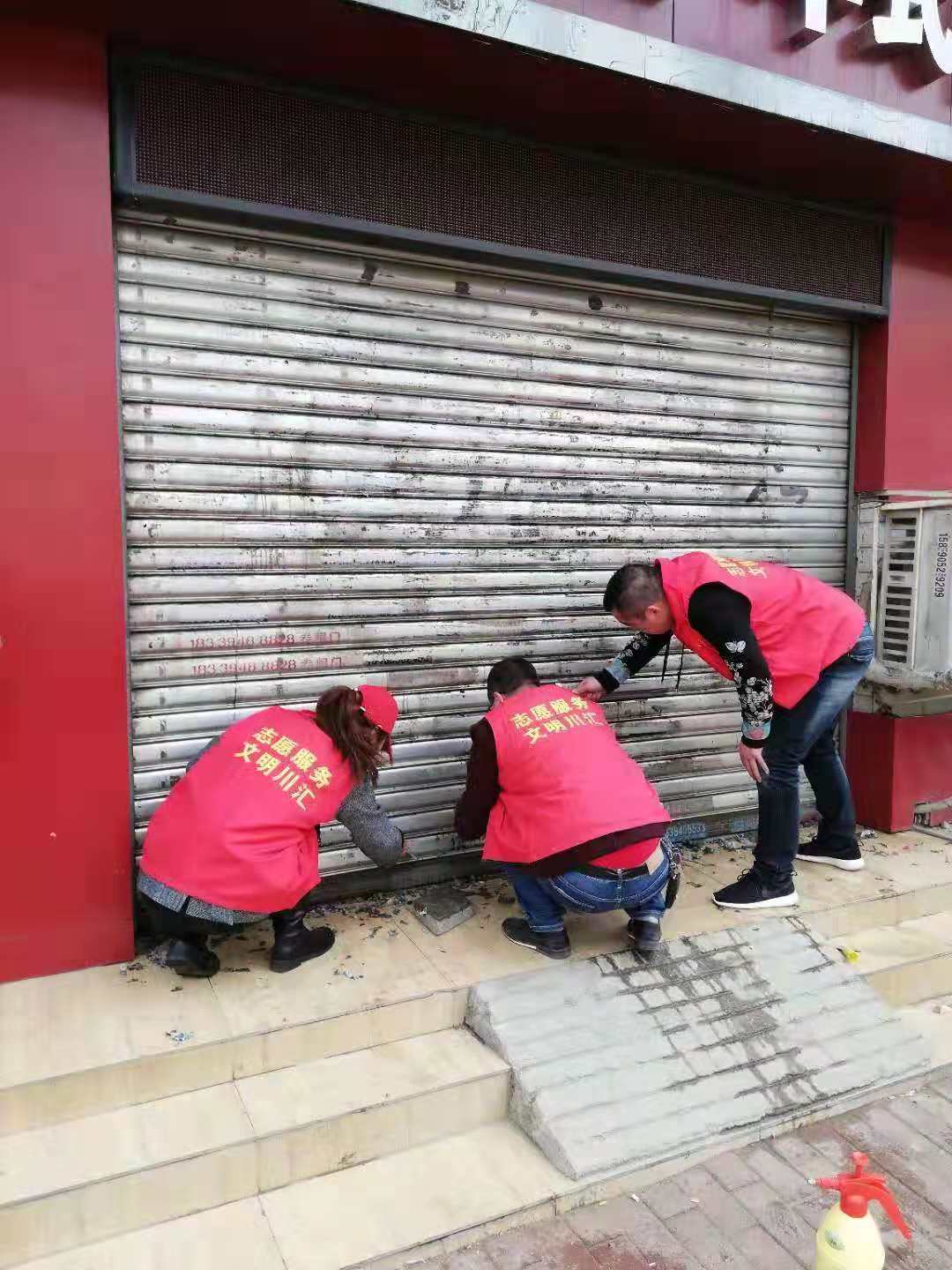作為城市管理和市容環(huán)境整治的“主戰(zhàn)場”,川匯區(qū)自11月起設(shè)立“市容工作日”,進(jìn)一步深化“五城聯(lián)創(chuàng)”工作,切實(shí)改善中心城區(qū)面貌。11月27日,“市容工作日”活動正式啟動,川匯區(qū)各單位紛紛組織志愿者走上街頭,在各自轄區(qū)開展小廣告清理等環(huán)境綜合整治工作。圖一為志愿者粉刷布滿小廣告的建筑物外墻。圖二為志愿者清理地面上的小廣告。圖三為志愿者清理卷閘門上的小廣告。