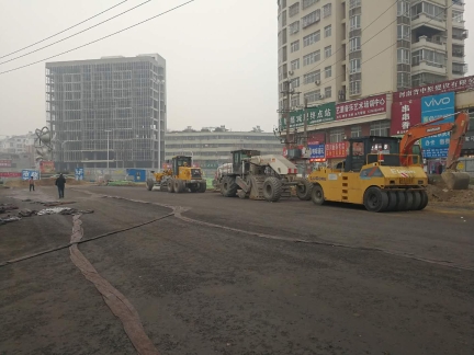 記者今日走訪漢陽(yáng)路中段(穎河路-建設(shè)路)看到,目前該路段機(jī)動(dòng)車道已鋪上黑色的混凝土物質(zhì),人行道則是壓實(shí)過(guò)的土路。壓路機(jī)等設(shè)備停靠在道路兩頭,并未啟動(dòng),有兩臺(tái)挖掘機(jī)及數(shù)十名工人在人行道上,鋪設(shè)下水道。施工路段內(nèi),有不少菜販在沿街叫賣。