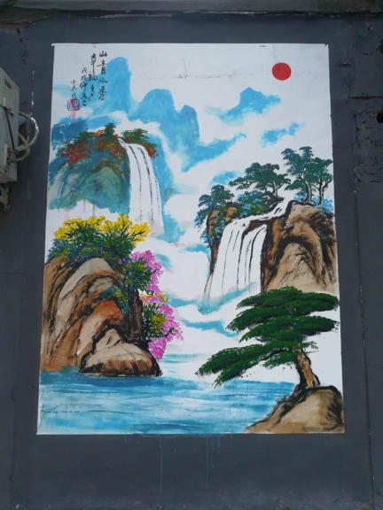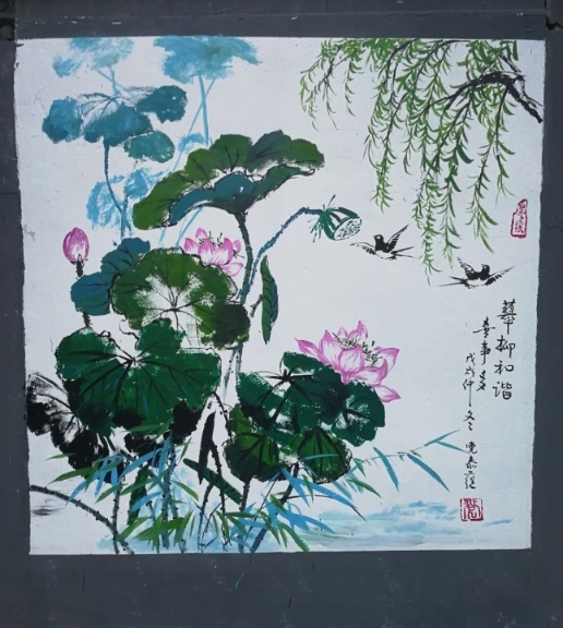 兩幅墻體彩繪,使普通而老舊的墻壁變成了一道靚麗的“文化風(fēng)景”,以一種清新、典雅的形式,扮靚著城市。