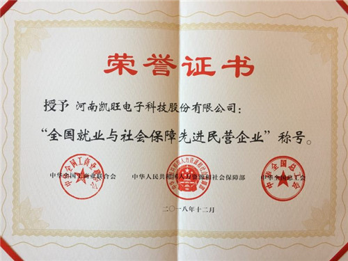 12月20日上午,記者獲悉在全國召開的就業(yè)與社會(huì)保障先進(jìn)民營(yíng)企業(yè)暨關(guān)愛員工實(shí)現(xiàn)雙贏表彰大會(huì)上,我市民營(yíng)企業(yè)河南凱旺電子科技股份有限公司榮獲“全國就業(yè)與社會(huì)保障先進(jìn)民營(yíng)企業(yè)”稱號(hào),中華全國工商業(yè)聯(lián)合會(huì)、中華人民共和國人力資源和社會(huì)保障部、中華全國總工會(huì)為該企業(yè)頒發(fā)了榮譽(yù)證書。