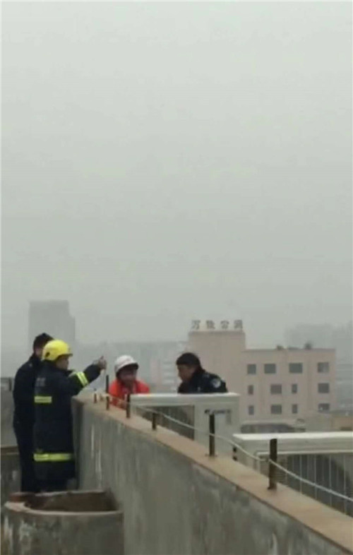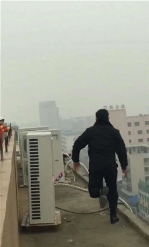 12月25日10時20分,鄲城縣公安局北關派出所接110指揮中心指令:在縣城人民路電影院十字路口西南角一棟10層樓的樓頂,一名女子要跳樓。接警后,北關派出所副所長李振、民警焦騰飛和縣消防大隊消防員不顧自身危險,通過左右迂回、“飛檐走壁”將輕生女安全救下。