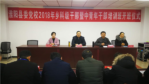 12月28日上午,淮陽縣委黨校鄉(xiāng)科級(jí)干部暨中青年干部培訓(xùn)班開班儀式在黨校培訓(xùn)樓舉行。縣委常委、組織部長(zhǎng)耿黨恩出席并講話,縣委黨校黨委書記、常務(wù)副校長(zhǎng)范德良主持開班儀式。54名鄉(xiāng)科級(jí)干部和41名中青年干部共95名學(xué)員參加開班儀式。