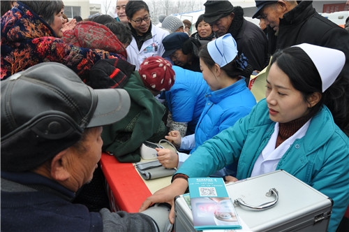 正在排隊(duì)量血壓的馬河村村民馬長(zhǎng)運(yùn)說(shuō):“我今年70多歲,血壓有點(diǎn)高,聽(tīng)說(shuō)這 里有義診活動(dòng),一大早便來(lái)這里等待了。”