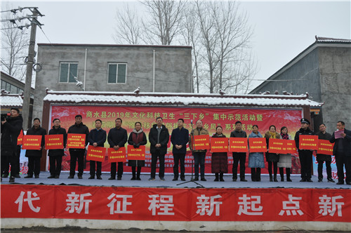 1月10日上午,雪花飛舞,天寒地凍。然而,商水縣袁老鄉(xiāng)王屯行政村文化大院暖 意融融,千人歡聚,同樂(lè)同慶,共享黨的溫暖。由縣委宣傳部、縣文明辦、縣文廣局 等部門聯(lián)合舉辦的商水縣2019年文化、科技、衛(wèi)生“三下鄉(xiāng)”啟動(dòng)儀式在這里舉行。