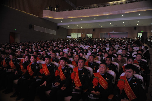 熠熠金盾耀新春,崢嶸歲月訴衷腸。1月24日晚,鹿邑縣文化中心大會(huì)堂里座無虛席,鹿邑縣公安部門在這里隆重舉行“2018忠誠記憶”職業(yè)榮譽(yù)頒獎(jiǎng)儀式??h領(lǐng)導(dǎo)李剛、李國際、雷申、侯自峰、陳巍、何新敏、齊梅英等和公安民警、警屬代表等共千余觀眾在現(xiàn)場共同見證。