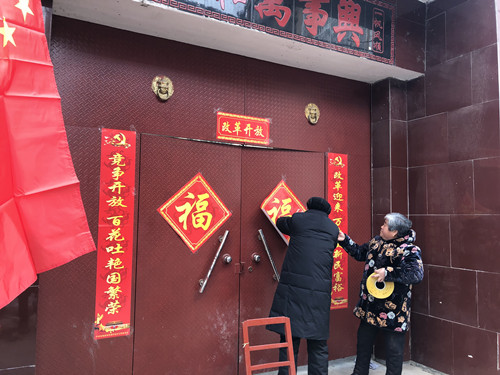 據(jù)了解,當(dāng)天下午時(shí)莊村黨支部訂制的3000多套春聯(lián),免費(fèi)贈(zèng)給448戶村民。記者看到,這些春聯(lián)的內(nèi)容都是承載著黨和政府的關(guān)懷,有的是歌頌改革開放的,有的是幸福報(bào)黨恩的。該村村民朱在靈領(lǐng)到春聯(lián)后立刻把春聯(lián)拿回家,他將門頭擦干凈后把春聯(lián)貼了上去。在門口懸掛著的國旗的襯托下,顯得格外喜慶?!按謇锩赓M(fèi)發(fā)這種帶黨徽的春聯(lián)已經(jīng)第三年了,這種春聯(lián)傳遞了黨的好聲音,推動(dòng)了群眾對黨的擁護(hù),現(xiàn)在村民的精神面貌也貌煥然一新?!敝煸陟`高興地說。