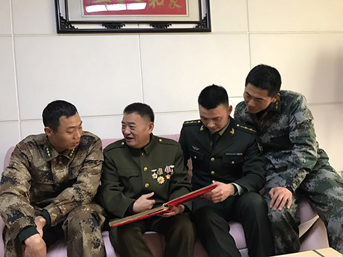 本報(bào)訊 追憶崢嶸歲月,鐵血軍魂永在。2月3日上午,春節(jié)的腳步越來(lái)越近,空氣中彌漫著節(jié)日喜慶的氣息。3名返鄉(xiāng)探親的“周口好兵”、一等功臣柳東坡、劉威、崔二偉相約慕名來(lái)到被中央軍委授予“英雄步談機(jī)員”榮譽(yù)稱號(hào)、一等功臣海水干家中,聆聽(tīng)老英雄講述當(dāng)年的戰(zhàn)斗事跡,上了一堂生動(dòng)的國(guó)防教育課。