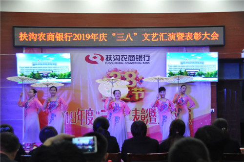 3月7日晚,扶溝農(nóng)商銀行舉行慶“三八”文藝匯演暨表彰大會,以充分發(fā)揮優(yōu)秀女員工的示范帶動作用,激勵全行女員工立足本職,愛崗敬業(yè),開拓進取。