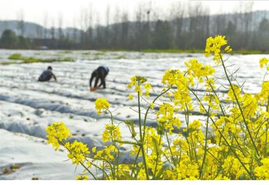 3月11日,農(nóng)民正在蔬菜基地勞作。隨著天氣回暖,各地農(nóng)民搶抓農(nóng)時(shí),在田間地頭伴著花香進(jìn)行春耕生產(chǎn)。李建新 攝