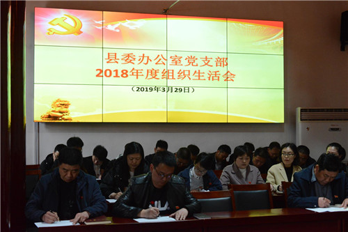 3月29日下午,鹿邑縣委辦公室黨支部召開2018年度組織生活會并開展民主評議黨員活動??h委書記梁建松,縣委常委、辦公室主任宋濤以一名普通黨員身份參加會議??h委辦公室機關全體同志參加會議。