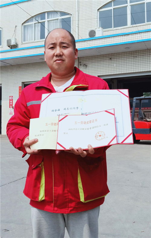 謝金海展示勞模證書(shū)