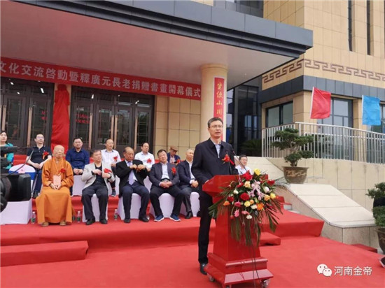 省文聯(lián)黨組書(shū)記王守國(guó)在開(kāi)幕式上說(shuō),釋廣元長(zhǎng)老不顧90多歲高齡,帶領(lǐng)50多名臺(tái)灣同胞,過(guò)??缃瑯s歸故鄉(xiāng),出席捐贈(zèng)活動(dòng),這不僅匯融了釋廣元長(zhǎng)老的“鄉(xiāng)愁”情節(jié),更是釋廣元長(zhǎng)老不忘初心,反哺家鄉(xiāng)情懷的具體體現(xiàn)。希望越來(lái)越多的臺(tái)灣同胞蒞臨河南,感悟中原,融入中原,攜手并進(jìn)砥礪前行共筑中國(guó)夢(mèng)!