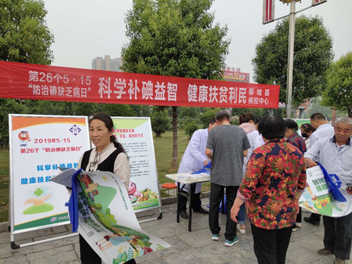 此次宣傳活動正值鄲城縣萬人健步走啟動儀式即將開始,近千名市民先后來到展臺前積極咨詢,宣傳收到了事半功倍的效果。活動中,工作人員向市民發(fā)放3000余份防治碘缺乏病宣傳折頁、宣傳畫、科學用鹽小常識,送出500多個印有補碘知識的環(huán)保手提袋,并講解碘缺乏病的危害、怎樣科學補碘、如何辨別真假碘鹽等知識,切實提高大家鑒別碘鹽、科學補碘的能力。