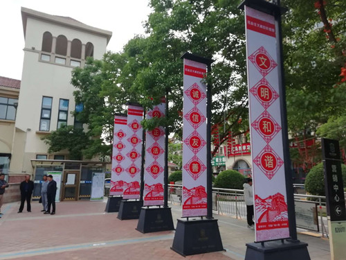 記者了解到,該社區(qū)圍繞自身特點(diǎn),結(jié)合社會熱點(diǎn),以社會主義核心價(jià)值觀為載體,貫徹落實(shí)“以文化城”的城市發(fā)展理念,以“愛在鄰里”為主題,結(jié)合中華民族優(yōu)秀傳統(tǒng)文化,涵蓋紅色黨建、文明禮儀、家風(fēng)家訓(xùn)、衛(wèi)生健康教育、環(huán)保知識、安全生產(chǎn)、社區(qū)工作等方面知識內(nèi)容,大力宣傳“家和、鄰睦、綠色、共建、共治、共享”的社區(qū)發(fā)展理念和“健康、衛(wèi)生、文明”的生活理念。一幅幅圖文并茂的宣傳板,一句句引人深思的文明標(biāo)語,都透露出濃濃的文化氣息。該活動既傳播了文明禮儀、傳統(tǒng)文化、科學(xué)常識、鄰里和諧、衛(wèi)生保健等方面知識,使居民在耳濡目染中受到教育,又傳達(dá)了社區(qū)支部、居委會的職能和相關(guān)業(yè)務(wù),讓居民們更加了解社區(qū)工作內(nèi)容,為建設(shè)和諧文明社區(qū)增添了一個(gè)嶄新的交流窗口。