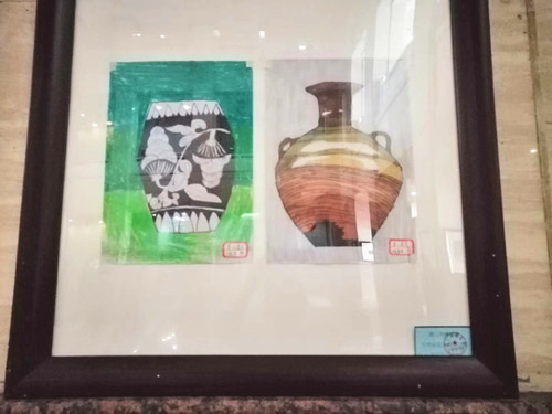 在文物繪畫(huà)作品展出區(qū)域,孩子們親手繪制出的近百幅文物繪畫(huà)作品,用畫(huà)筆與歷史對(duì)話,感悟著中華民族先人們的智慧結(jié)晶。