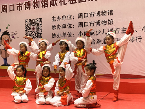 5月18日國(guó)際博物館日當(dāng)天,周口市博物館舉行系列主題活動(dòng)“如果文物會(huì)說(shuō)話,我為祖國(guó)倍驕傲”詩(shī)歌朗誦活動(dòng)、文物繪畫(huà)作品展活動(dòng)。在活動(dòng)現(xiàn)場(chǎng),小朋友們帶來(lái)了精彩紛呈的節(jié)目,有根據(jù)市博物館的文物創(chuàng)作的詩(shī)歌作品《文物會(huì)說(shuō)話:漢代玉豬》《文物會(huì)說(shuō)話:戰(zhàn)國(guó)青龍玉佩》,有集體朗誦《中華頌》《初生的太陽(yáng)》《我驕傲我是中國(guó)人》,還有獨(dú)唱、舞蹈、相聲、跆拳道、非洲鼓表演等,共同為本次活動(dòng)增光添彩。