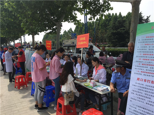 儀式現(xiàn)場,示范區(qū)組織的大型義診活動(dòng)同時(shí)舉行,現(xiàn)場工作人員發(fā)放了《創(chuàng)建國家衛(wèi)生城市致廣大市民的一封信》和《創(chuàng)衛(wèi)行業(yè)衛(wèi)生標(biāo)準(zhǔn)》。志愿者代表黃玉麟發(fā)言,全體志愿者舉起右手莊嚴(yán)宣誓。