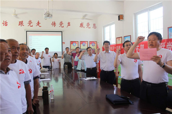 縣教體局黨組書記、局長(zhǎng)劉現(xiàn)營(yíng),城郊鄉(xiāng)鄉(xiāng)長(zhǎng)王忠,縣教體局機(jī)關(guān)一支部書記、主任科員張本寶,城郊鄉(xiāng)副鄉(xiāng)長(zhǎng)晉惠萍等帶領(lǐng)與會(huì)黨員舉起右拳,挺起胸膛,莊嚴(yán)宣誓,重溫了入黨誓詞。
