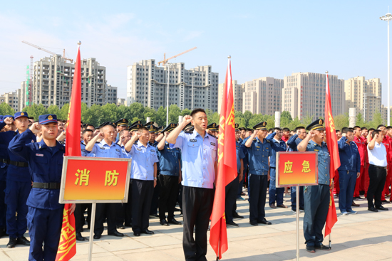 5月30日上午,鹿邑縣在縣文化中心廣場(chǎng)舉行應(yīng)急救援隊(duì)授旗宣誓儀式,縣委常委、常務(wù)副縣長(zhǎng)陸志杰現(xiàn)場(chǎng)為全縣新整合的15支專(zhuān)、兼職應(yīng)急救援隊(duì)伍授旗,各應(yīng)急救援隊(duì)伍在推選代表的帶領(lǐng)下,共同舉起右手進(jìn)行了莊嚴(yán)的宣誓儀式。