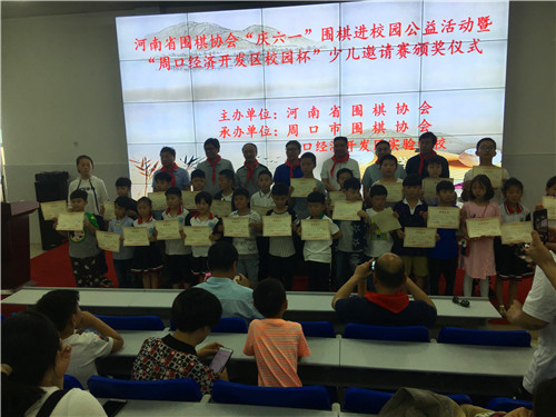 6月1日,省圍棋協(xié)會在周口經(jīng)濟(jì)開發(fā)區(qū)實(shí)驗(yàn)學(xué)校舉行慶“六一”圍棋進(jìn)校園公益活動暨校園杯圍棋邀請賽。省圍棋協(xié)會副會長郭寶林、秘書長袁曦、副秘書長張新華,市工信委主任姚衛(wèi)田,周口圍棋協(xié)會有關(guān)領(lǐng)導(dǎo)參加。
