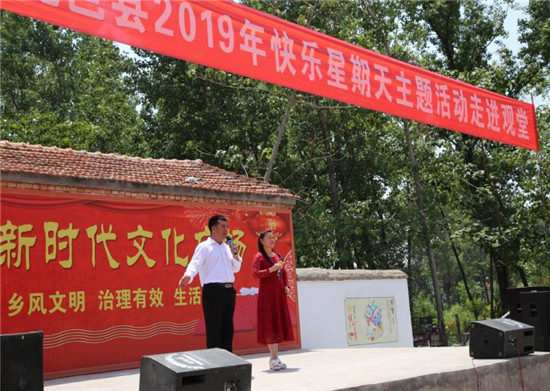 “這戲唱的真帶勁!聽得真癮!”雖然演出已經(jīng)結(jié)束,但郭窯村75歲的村民郭思勤依然坐在原地,久久不愿離去。 據(jù)悉,為確?!翱鞓沸瞧谔臁敝黝}活動取得實效,鹿邑縣委宣傳部、統(tǒng)戰(zhàn)部高度重視,統(tǒng)籌各種資源,動員全縣文聯(lián)和文藝八大協(xié)會等各方力量,創(chuàng)新活動載體,豐富活動形式,不斷深化群眾性精神文明創(chuàng)建活動,培育和踐行社會主義核心價值觀,不斷增強(qiáng)群眾的幸福感和獲感。鹿邑縣委宣傳部社宣科負(fù)責(zé)人寧偉在現(xiàn)場表示:“我們今年精心準(zhǔn)備了40場文藝大餐,每周都會組織文化、科技、醫(yī)療等戰(zhàn)線上的志愿者下鄉(xiāng)進(jìn)村進(jìn)行文藝演出、開展志愿服務(wù),讓基層的文化活動更加豐富多彩,讓群眾在家門口就能享受到更多貼心的服務(wù)。”