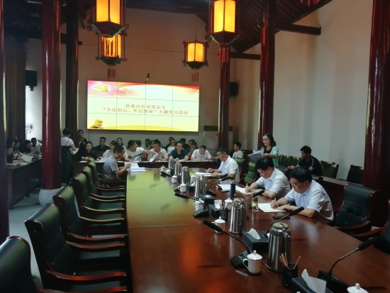 6月25日下午,鹿邑縣委辦公室黨總支開展“不忘初心、牢記使命”主題黨日活動。縣委書記梁建松,縣委常委、辦公室主任侯自峰以普通黨員身份參加活動,并帶頭繳納了黨費??h委辦公室常務(wù)副主任、黨總支書記胥茂森主持主題黨日活動。縣委辦公室全體黨員參加活動。