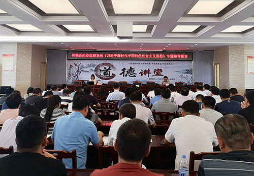 為進(jìn)一步推動(dòng)鄲城縣紀(jì)檢監(jiān)察干部深入學(xué)習(xí)貫徹黨的十九大精神,自覺用“習(xí)近平新時(shí)代中國特色社會(huì)主義思想”武裝頭腦、指導(dǎo)實(shí)踐、推動(dòng)工作,按照全縣紀(jì)檢監(jiān)察系統(tǒng)“鑄鐵軍、塑形象、再出發(fā)”活動(dòng)計(jì)劃安排,6月28日,鄲城縣紀(jì)委邀請(qǐng)縣委黨校教員鄭紅霞為全縣紀(jì)檢監(jiān)察干部做了一場(chǎng)“習(xí)近平新時(shí)代中國特色社會(huì)主義思想”專題輔導(dǎo)報(bào)告。