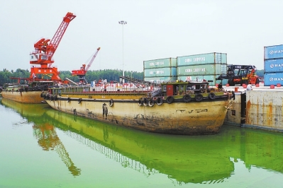 7月20日,周口中心港一派繁忙景象。該港口是我省規(guī)模最大、靠泊能力最強(qiáng)的內(nèi)河港口。隨著公、鐵、水、空“四位一體”立體綜合交通格局的逐步形成,周口中心港將成為豫貨出???、連接長三角經(jīng)濟(jì)圈的“橋頭堡”,也將成為中原地區(qū)深度融入“一帶一路”建設(shè)、通江達(dá)海的重要節(jié)點(diǎn)。河南日?qǐng)?bào)記者 陳更生 王錚 攝