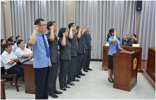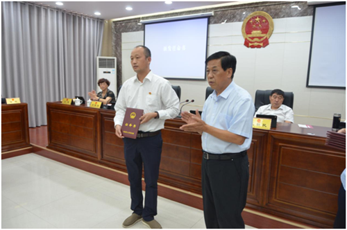 會議組織新任命的國家機(jī)關(guān)工作人員向憲法宣誓,李國際為新任命的國家機(jī)關(guān)工作人員頒發(fā)了任命書。