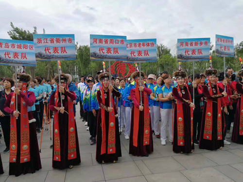 8月20日上午,2019年全國老年人持杖健走交流活動在內(nèi)蒙古烏海市開幕,吸引了來自全國38支代表隊的652名持杖健走愛好者參加。我市老年人體育協(xié)會共選派10名愛好者參賽。圖為我市持杖健走愛好者正在進行戶外穿越項目的交流。