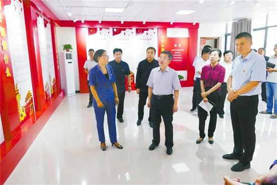皇甫立新首先來到槐店回族鎮(zhèn)海樓社區(qū)。海樓社區(qū)位于縣城中心,是全縣政治經(jīng)濟(jì)文化中心。走進(jìn)社區(qū),路兩旁紅旗飄飄,新時代、新思想、新目標(biāo)、新征程等具有時代特色的宣傳畫繪制在兩邊的墻壁上。社區(qū)廣場上“百村綜合治理辦公室”的牌子特別醒目,社區(qū)辦公室有關(guān)百村綜合治理的規(guī)章制度一應(yīng)俱全?;矢α⑿聦巧鐓^(qū)的工作給予充分肯定,并就工作中存在的問題給予指正,要求社區(qū)黨支部突出建好、管好、用好村委黨員會議室,突出主題,唱響主旋律。