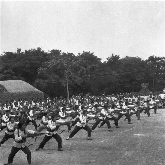 全民皆兵作為貫穿在毛澤東時代的一個最具中國特點的社會景觀,留下了許多值得回味的畫面。廣大農(nóng)民和工人亦兵亦民、亦工亦兵,拿起鋤頭是莊稼漢,走進(jìn)車間是工人,拿起槍桿就是一個兵。民兵訓(xùn)練在正規(guī)軍人的指導(dǎo)下利用農(nóng)閑時間,采取小型、就地、分散的方法進(jìn)行,主要訓(xùn)練課目有隊列、刺殺、步槍射擊、投手榴彈、簡易單兵戰(zhàn)術(shù)、站崗放哨等。