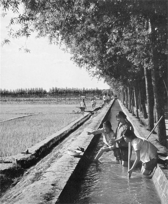 1975年6月,商水到周口公路兩邊的農(nóng)業(yè)水利干渠。 上世紀(jì)70年代,大批上海知識青年來到周口、商水、淮陽,進(jìn)行“上山下鄉(xiāng)”鍛煉,他們曾在商水利用干渠灌溉特點試驗種植水稻?,F(xiàn)在,淮陽縣檔案館還存有一批知青報到的花名冊。 (圖片來源:圖書《Former yellow river flood area transformed》中文名《黃泛區(qū)變化》)