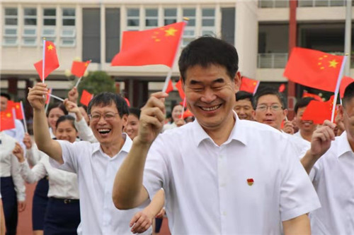 “我和我的祖國,一刻也不能分割。無論我走到哪里,都流出一首贊歌……”8月26日,在鄲城縣第二實(shí)驗(yàn)小學(xué),縣教體局黨組書記、局長(zhǎng)劉現(xiàn)營帶領(lǐng)局黨組成員、機(jī)關(guān)各黨支部書記和二實(shí)小全體師生同唱《我和我的祖國》,用歌聲表達(dá)全縣教育人對(duì)祖國的無限熱愛。