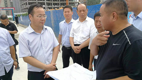 張建黨一行先后來到貴和家園、盛和小學、乾和家園和山水周口等安置區(qū)項目和重點項目建設現(xiàn)場進行實地督導。
