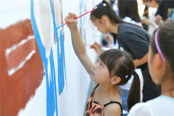 活動(dòng)現(xiàn)場,參與者們從設(shè)計(jì)構(gòu)圖到勾勒輪廓,從調(diào)制顏料到搭配色彩,每一個(gè)步驟、每一道工序都一絲不茍。大家圍繞“禮贊新中國 歌頌新時(shí)代”這一主題,在近百米長的墻面上認(rèn)真作畫,只見現(xiàn)場參與者工筆勾線、揮毫上色,經(jīng)過一個(gè)多小時(shí)的創(chuàng)作,“社會主義核心價(jià)值觀”“中國夢”“市民文明公約”等愛國元素躍然墻上……內(nèi)容豐富、形式多樣,一幅幅作品色彩明快、質(zhì)樸純?nèi)?,充分展示了書畫志愿者們對祖國和家鄉(xiāng)的熱愛,對藝術(shù)的追求和對美好生活的向往,宣傳了中國傳統(tǒng)書畫藝術(shù),提升了新時(shí)代文化自信,為該縣美術(shù)愛好者帶來了一場藝術(shù)盛宴。