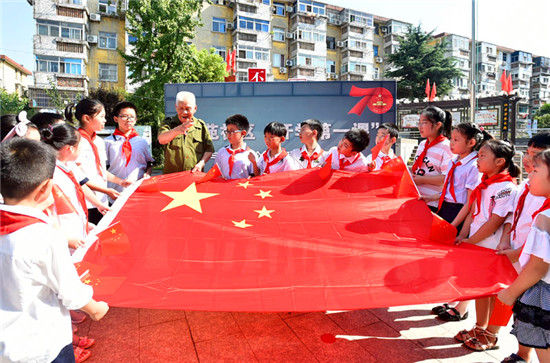 升旗儀式結束后,王文華為孩子講述國旗故事,一堂生動、鮮活的愛國主義教育課讓孩子們受益匪淺。“祝福祖國,生日快樂”“祖國萬歲”……站在國旗下,聽著王文華的講述,孩子們情不自禁表達對祖國母親的祝福,有心的孩子家長拍下一張張孩子與國旗合影的照片,發(fā)在微信朋友圈,紅色主題的圖文得到一片點贊。