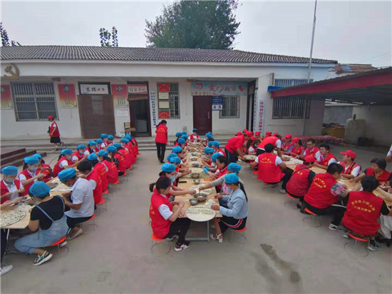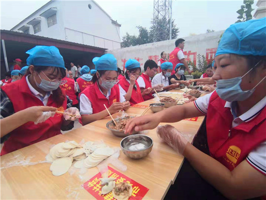 當(dāng)天上午,一場由周口市紀(jì)委監(jiān)委駐杜崗村工作隊聯(lián)合紅花鎮(zhèn)、杜崗村、周口北斗達(dá)教育集團(tuán)共同舉辦的孝老餃子宴,在該村文化廣場別開生面地拉來序幕?!按謇锼?0歲(含60歲)以上的老人今天中午都到文化廣場來吃餃子啊,市紀(jì)委和愛心企業(yè)來為我們包餃子啦……”8時剛過,杜崗村黨支部書記李長青就通過村里的大廣播每隔半小時播報一次,生怕哪位老人忘了這檔子事兒。