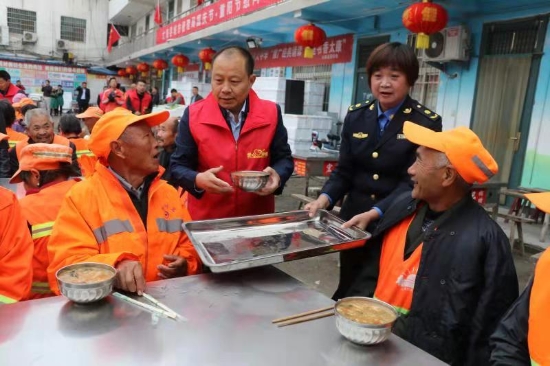 當日凌晨5時許,太康縣愛心早餐點人頭攢動,熱鬧非凡,一輛裝滿新鮮蔬菜的大貨車停放在院中,20多名城管志愿者在太康縣城管局局長張愛梅的帶領(lǐng)下正從車上往下卸蔬菜。聽說愛心企業(yè)要為環(huán)衛(wèi)工捐贈蔬菜,太康縣委常委、統(tǒng)戰(zhàn)部長張新棟也放棄節(jié)日休息,天不明趕到太康愛心早餐點,加入到蔬菜裝卸行列?!肮?jié)日里,縣領(lǐng)導也不忘過來看望我們環(huán)衛(wèi)工,真讓人感動啊?!笨粗鴱埿聴?、張愛梅等人忙前忙后卸蔬菜,臉上浸滿了汗珠,環(huán)衛(wèi)工張大爺?shù)热藙忧榈卣f,“社會上有這么多好人關(guān)心我們環(huán)衛(wèi)工,我們再苦再累也值了!”