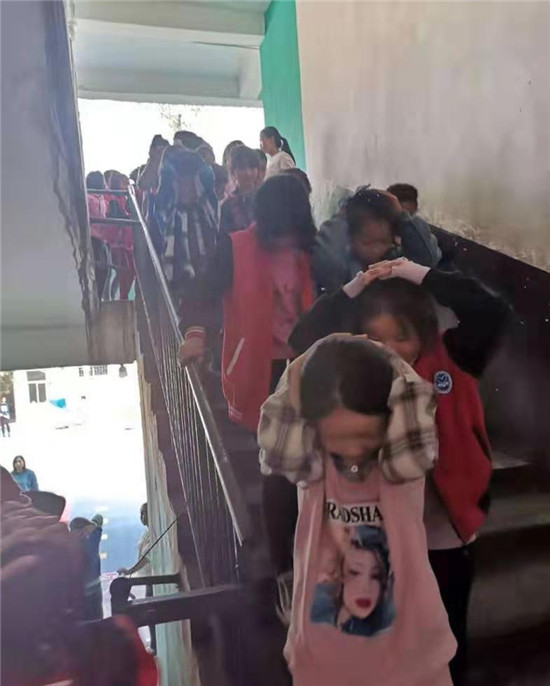 當(dāng)日9時(shí)許,一陣急促的警報(bào)聲在該校園內(nèi)響起,防震防踩踏緊急疏散安全演練活動(dòng)正式拉開帷幕。各小組成員按照演練方案要求迅速到達(dá)各自負(fù)責(zé)的指定位置,同學(xué)們?cè)诎嘀魅卫蠋煹囊龑?dǎo)下,雙手抱頭或用書包、書本護(hù)住頭部,迅速并安全有序地向操場(chǎng)撤離,班主任集結(jié)隊(duì)伍,清點(diǎn)人數(shù)并向演練指揮組報(bào)告撤離情況。整個(gè)演練過(guò)程反應(yīng)迅速、協(xié)調(diào)統(tǒng)一,共計(jì)用時(shí)6分20秒。
