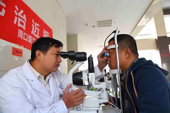 11月8日是記者節(jié)。為了讓奔波在新聞戰(zhàn)線,熬夜趕稿、組版的編輯記者眼睛更健康,11月5日,周口愛(ài)爾眼科醫(yī)院的醫(yī)生將儀器搬到周口報(bào)業(yè)傳媒集團(tuán),現(xiàn)場(chǎng)為編輯記者檢查眼睛,關(guān)愛(ài)新聞工作者的身心健康。圖為眼科醫(yī)生為記者檢查視力、實(shí)施治療。記者 劉俊濤 梁照曾 攝