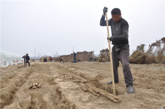11月26日,沈丘縣白集鎮(zhèn)40多歲的耿金中與另外兩個同伴一起來到周口城鄉(xiāng)一體化示范區(qū)許灣鄉(xiāng)肖王莊,未來的一段時間,他們吃住都將在這里進行,直到將這一區(qū)域的山藥挖完。耿金中說,他挖山藥已經(jīng)有20多年了,20多年前,沈丘縣大規(guī)模種植山藥,每到收獲時,會有很多山東挖山藥工人來這里挖山藥。他看到這個行當能賺錢,就開始學(xué)挖山藥技術(shù)。此后的多年,他先后到山西、湖北、安徽等地挖山藥。