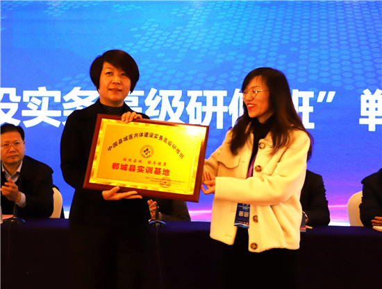 開幕式上,與會領(lǐng)導(dǎo)分別就“遵義院士工作中心·鄲城站”、“國家遠(yuǎn)程醫(yī)療與互聯(lián)網(wǎng)醫(yī)學(xué)中心協(xié)作單位”、“中國縣域醫(yī)共體建設(shè)實務(wù)高級研修班培訓(xùn)基地”、“國家十三五重大研發(fā)計劃——國家心腦血管高危人群疾病綜合篩查與防控及衛(wèi)生經(jīng)濟(jì)學(xué)研究項目”進(jìn)行了授牌、揭牌。