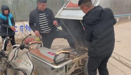 由于方便快捷,現(xiàn)在電動(dòng)車已經(jīng)成了很多市民出行的主要交通工具。但是,在沒有滅火器的情況下,一旦遇到電動(dòng)車電瓶短路著火該怎么辦?近日,周口消防救援支隊(duì)淮陽大隊(duì)淮周路中隊(duì)的三名消防隊(duì)員鄧碩宇、劉小龍、王世繼在輪休回家途中突遇一輛電動(dòng)三輪車冒起了黑煙,三名隊(duì)員迅速趕上前去查看情況并當(dāng)機(jī)立斷利用周圍泥土僅用幾十秒的時(shí)間就消除了火情。