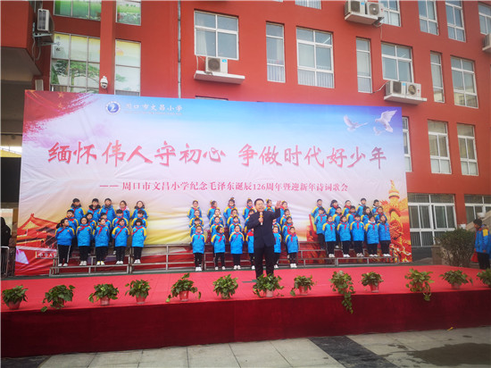 12月26日,是毛澤東誕辰126周年紀(jì)念日。為深切緬懷偉大領(lǐng)袖毛澤東,弘揚(yáng)革命精神、民族精神和愛(ài)國(guó)主義精神,文昌小學(xué)舉行了紀(jì)念毛澤東誕辰126周年暨迎新年詩(shī)詞歌會(huì)。