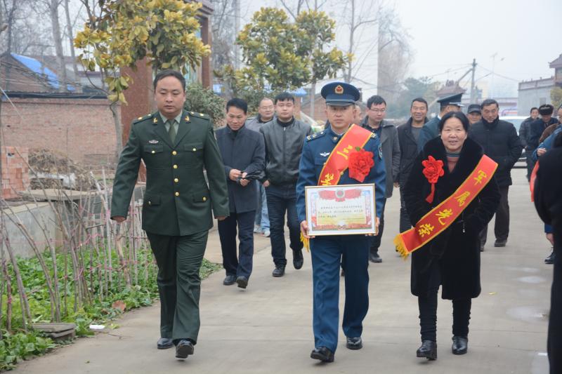 12月下旬,黃繼光生前所在部隊與沈丘縣人武部、沈丘縣退役軍人事務(wù)局共同商榷,為了使軍人的榮譽(yù)向官兵家庭拓展、向全社會輻射,在新年前開展一次功章勵我強(qiáng)軍志、立功喜報送到家活動,選派專人成立報喜小分隊,為立功授獎的官兵家庭送去立功喜報和慰問金。