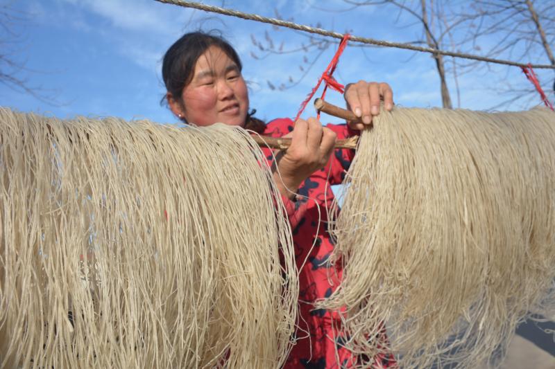 “我們是附近大朱莊村的,承包了30多畝地,主要種植西瓜紅薯等經(jīng)濟作物,效益不錯。今天在程小忠這里加工純手工紅薯粉條,他還承諾幫助我們銷售,俺打心眼里高興啊……”正在晾曬粉條的朱勝民、王秀蓮夫婦一臉興奮。