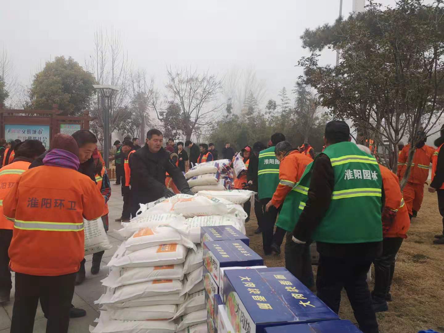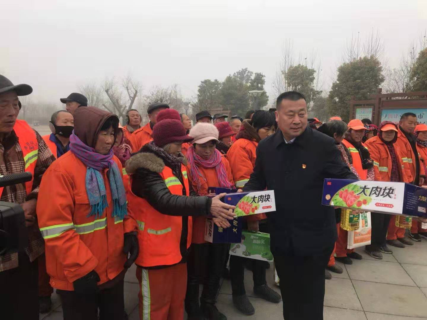 1月22日上午,天氣有些陰冷,葛杰帶著公司人員,拉著面粉、大米、牛奶、水果等慰問品來到失能老人、環(huán)衛(wèi)工人身邊,送去節(jié)日問候和新春祝福,大家心中頓感溫暖如春。